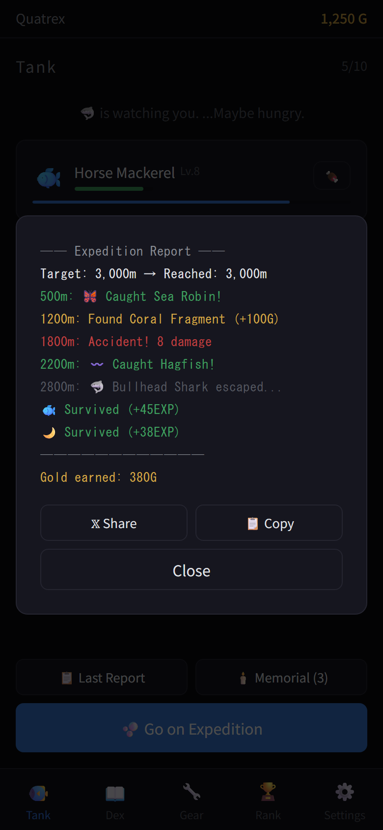 - Start an expedition — choose a depth and companions