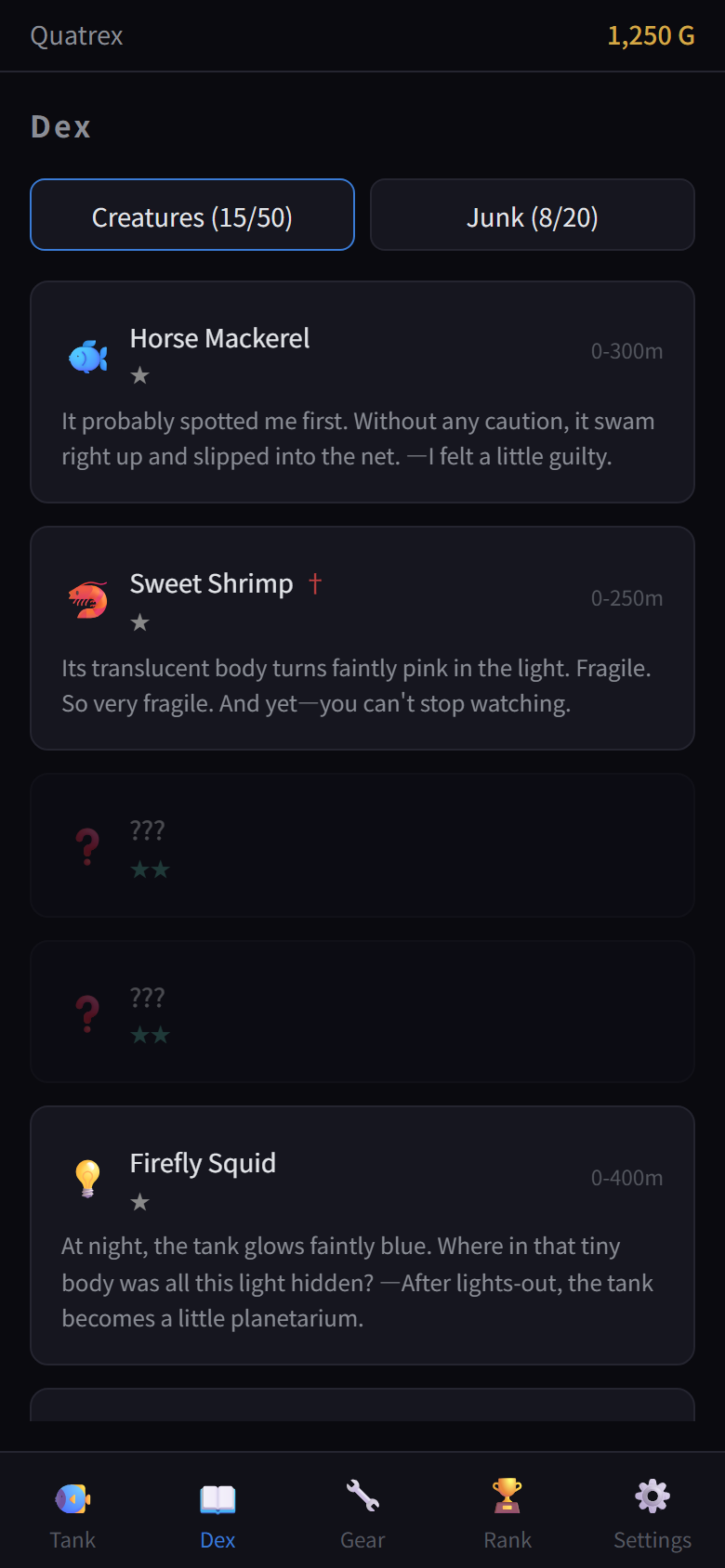 - 50 deep-sea creatures to catch and raise